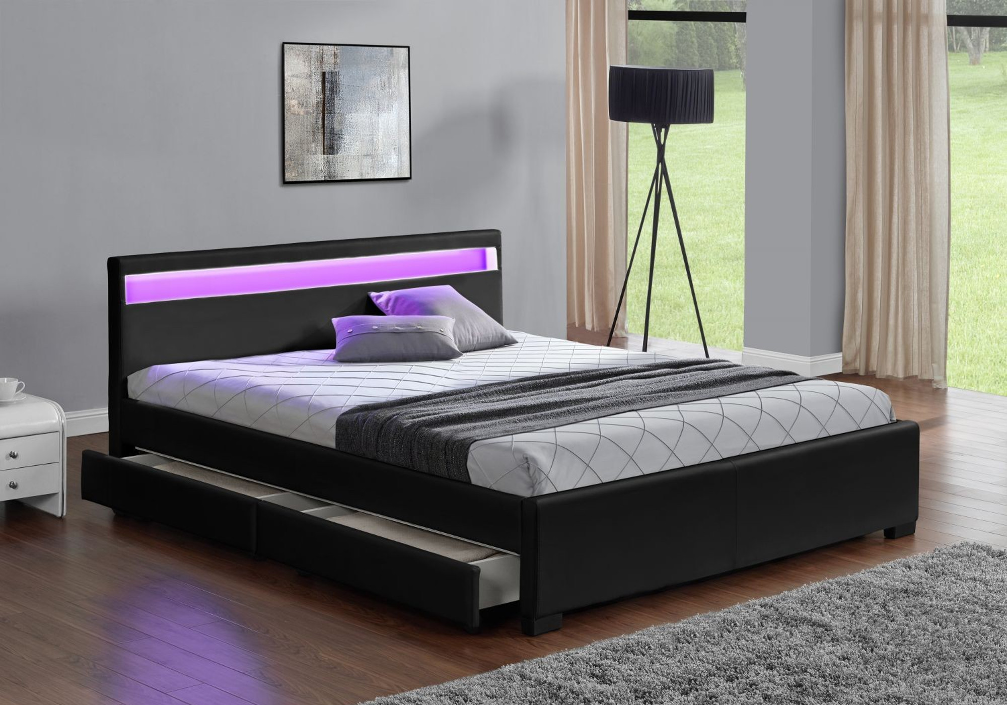 Lit CITY 140×190 + TĂȘte De Lit Chevet+ 1 Maxi Tiroir / Noir & ChĂȘne …