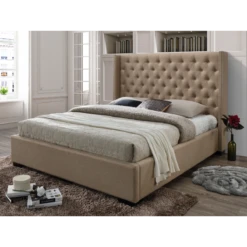 Lit Avec TĂȘte De Lit CapitonnĂ©e – 160 X 200 Cm – Tissu – Beige – MAS…