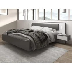 Lit Avec Chevets Suspendus 160 X 200 Cm – Avec LEDs – Gris Et Blanc – …