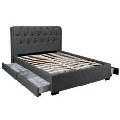 Lit CITY 140×190 + TĂȘte De Lit Chevet+ 1 Maxi Tiroir / Noir & ChĂȘne …