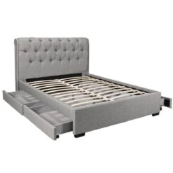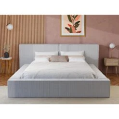 Lit Coffre 180 X 200 Cm – Velours CĂŽtelĂ© – Gris Clair – TIMANO