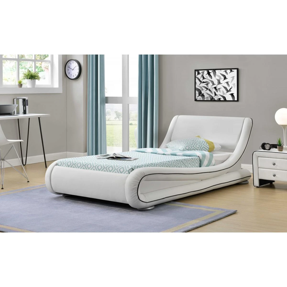 Lit en 90X190 cm avec un matelas nuage de 24 CM – Structure en multipli recouvert de P.U. BLANC avec liserĂ© NOIR – Sommier Ă 24 lattes en peuplier – Dim : 214X112XH.68 cm – Frais de livraison forfaitaire & EN BAS DE L’IMMEUBLE FOURNIER DECORATION