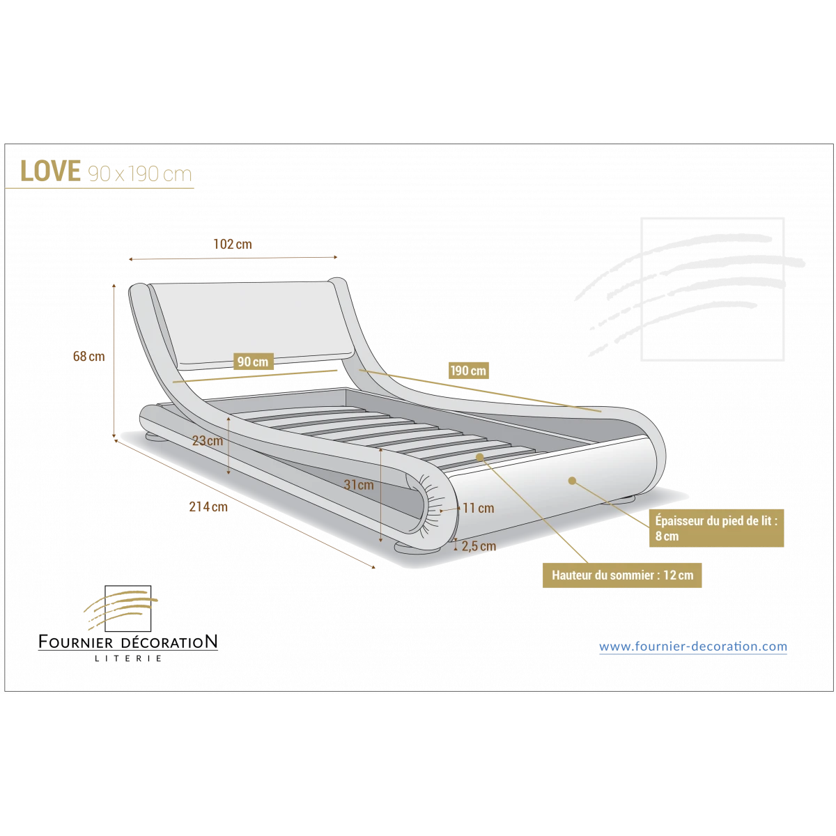 Points forts Fournier Decoration Ensemble Love lit Pu Blanc 90 + matelas nuage 24 cm