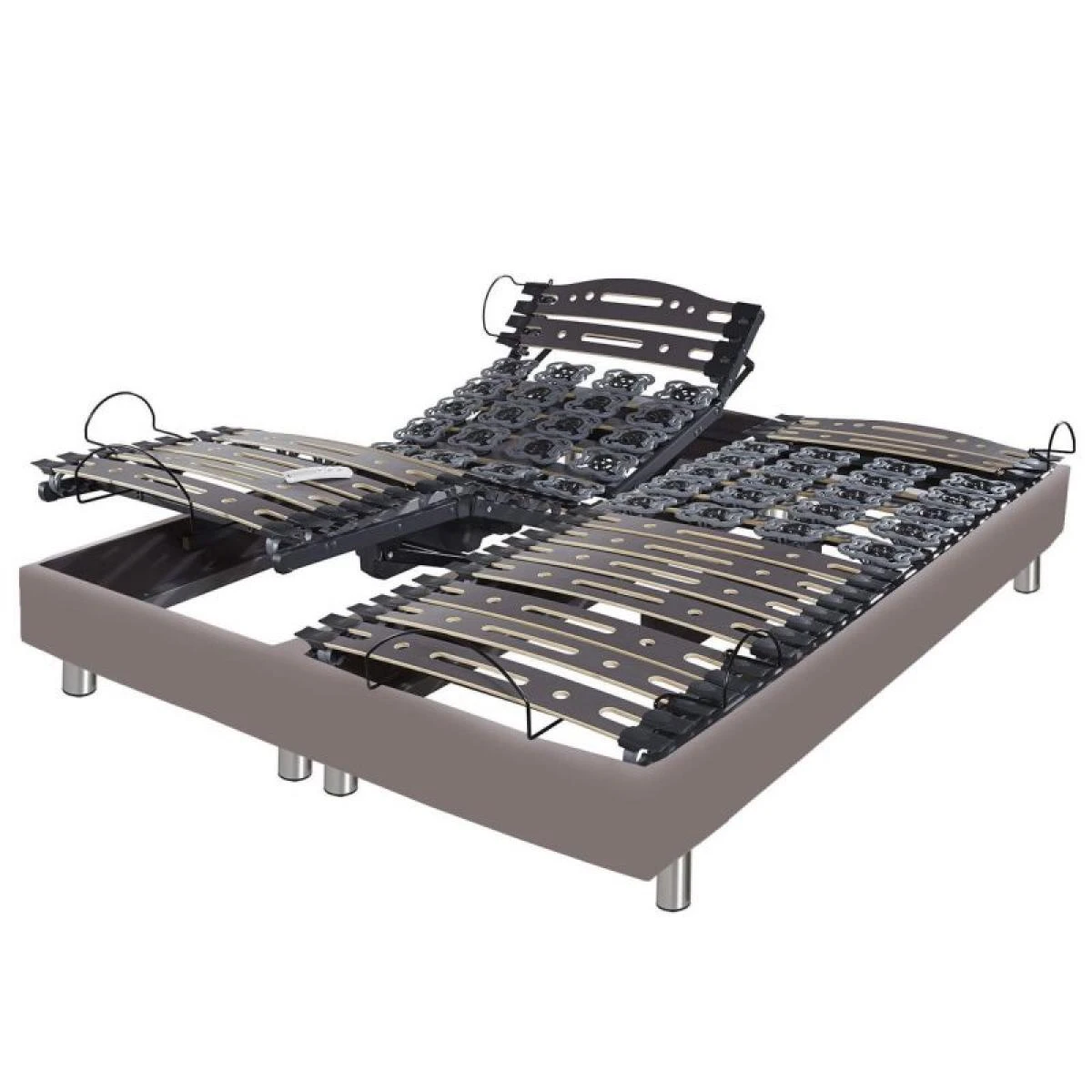 Nom: Lit électrique 2x90x200 Relax Ixia simili taupe