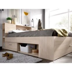 Points forts Vente-Unique Lit avec tĂȘte de lit rangements et tiroirs – 140 x 190 cm – Coloris : Naturel + Sommier – LEANDRE