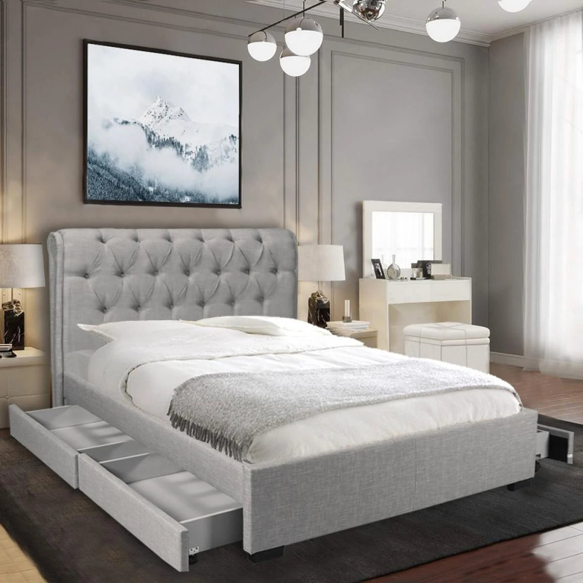 Points forts Le Quai Des Affaires Lit CHELSEA 160×200 + 4 tiroirs + sommier / Gris clair