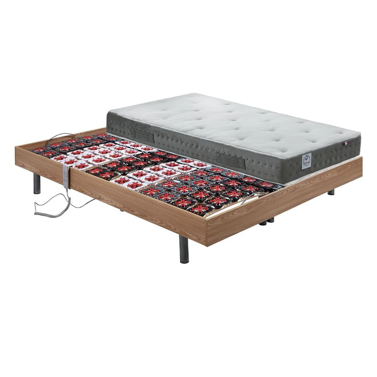 Technologie par système de plots : système le plus haut de gamme de literie électrique, il soutient toutes les parties de votre corps point par point et s’adapte à toute les morphologies. Vous vous sentez comme sur un nuage et votre repos est encore plus bénéfique !