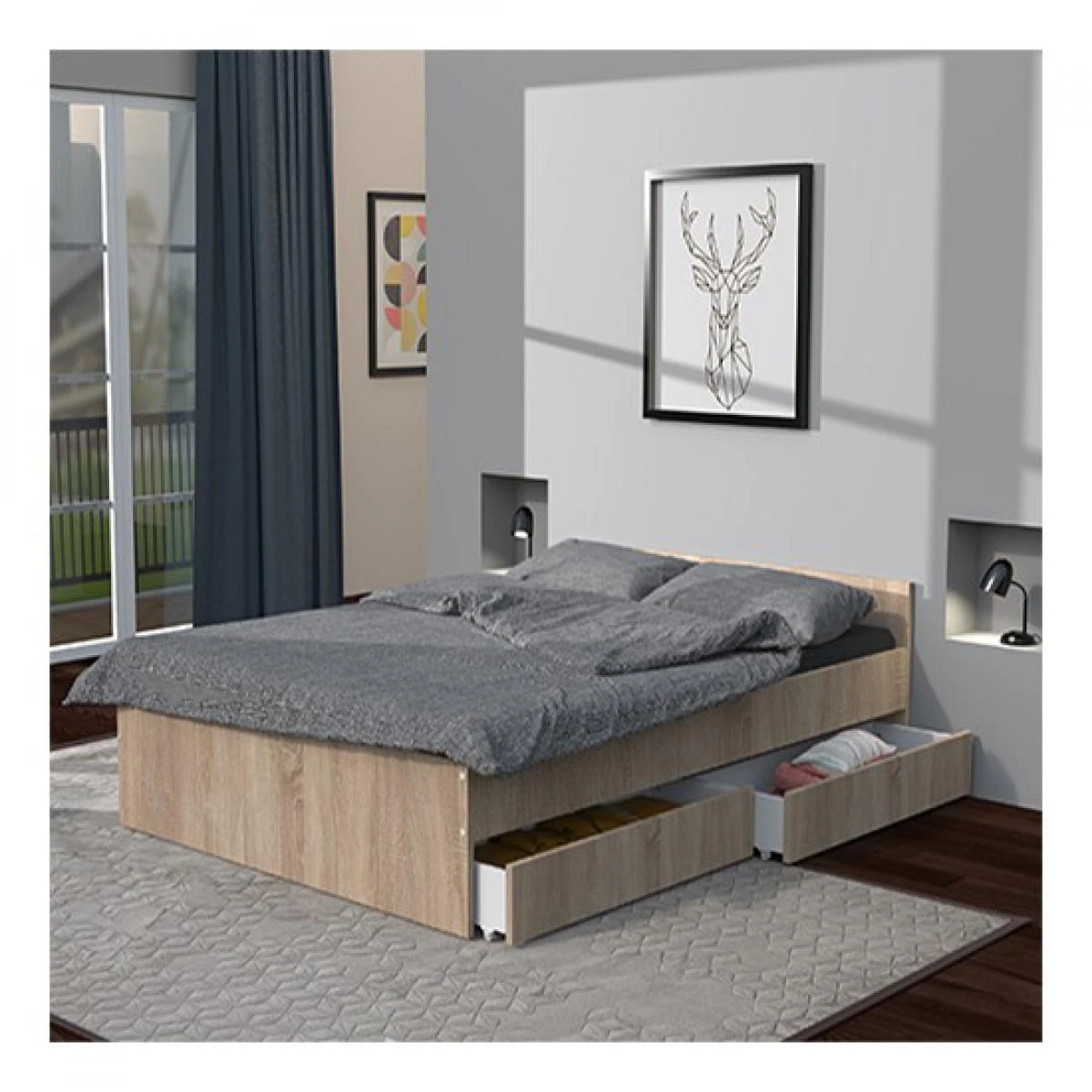 Points forts Le Quai Des Affaires Lit KAPPA 140×190 cm + 2 tiroirs / ChĂȘne Blanchi