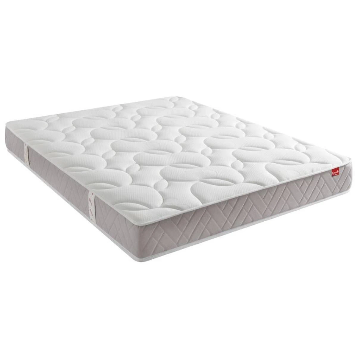 Compatible avec les sommiers 160 x 200 cm, ce matelaspour lit se dédie au confort et au bien-être. Fabriqué en France par l’artisan du sommeil EPEDA, ce modèle présente des lignes élégantes et un jeu de coutures soigné. D’une épaisseur totale de 23 cm, ce matelas blanc et grisprocure une sensation apaisante toute la nuit grâce à son garnissage multimatière « Cocoon ». Synonyme de nuits saines, ce matelas est certifié NF Environnement et Oeko-Tex Standard 100. Ce matelas à ressorts est composé de deux faces de couchage garanties sans traitement biocide. La face hiver présente une double couche de mousse polyéther de densité 18 kg/m³ associée à des fibres hypoallergéniques et 2 cm de mousse polyuréthane. Pour des nuits plus légères, la face été inclut une couche de mousse polyéther 18 kg/m³ 8 mm et des fibres hypoallergéniques.